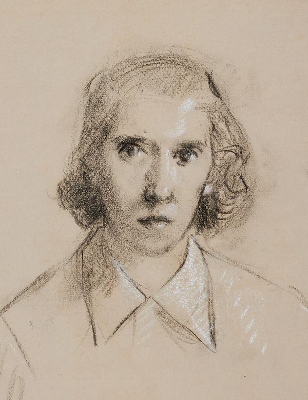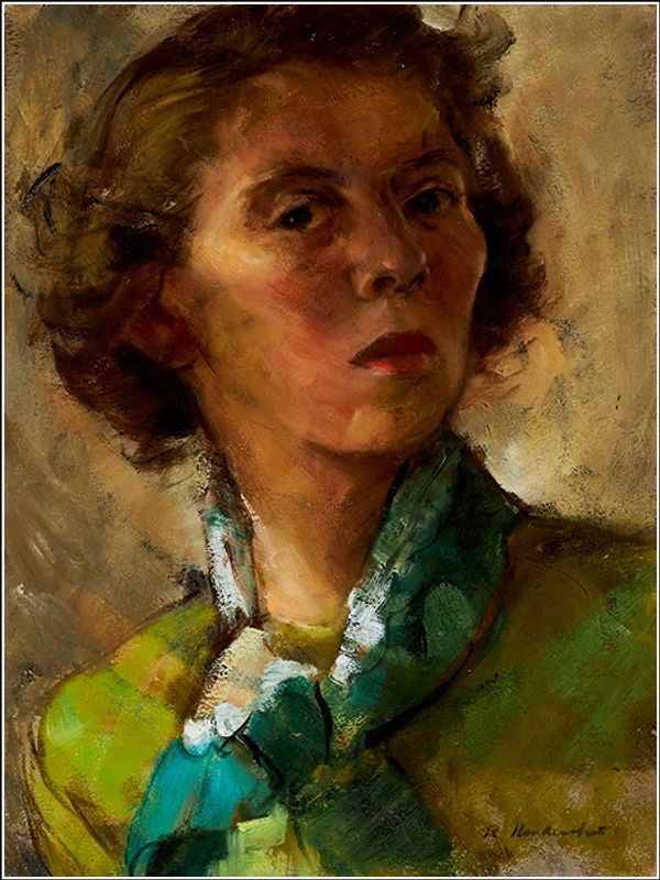 In 1944, Hendershot entered the drawing and painting programme at the Ontario College of Art, being accepted directly into third year. Her object was to further her studies of the human figure. The atmosphere at OCA was old-fashioned and workman-like; she took classes of interest and never stayed for weekends. Teachers included Rowley Murphy, Manly MacDonald, Archibald Barnes, and John M. Alfsen. Her Self-Portrait c.1945, done as a class assignment, exhibits her technical finesse and aloofness.