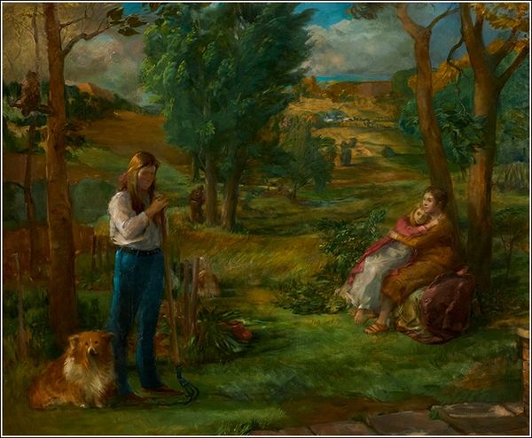 In Hendershot’s The Return of Persephone the women are doubly vulnerable and this second aspect, their isolation, functions as a pointed social critique. In the canvas, the artist represents a scene of powerful female experiences, and yet the single other figure in the picture, a man, looks away. Hendershot portrays a world in which the substance of women’s lives threatens to go unseen.