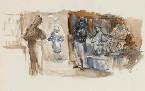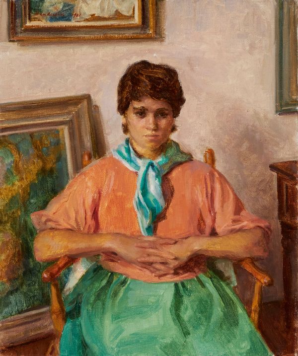 Many of the works in Hendershot’s 1974 exhibition were interpreted as portraits and viewed as distinct from the larger Demeter and Persephone paintings, but as traditional portraits, these works are ambiguous. None of them were commissioned; in fact, Hendershot paid the models for their work. Hendershot employed the formal conventions of traditional portraiture, but she used them to frame an alternative social reality. The binary of artist and muse is undermined: all participants are at work, the portraits are, in many senses, a collaboration. At the same time, Hendershot is the author and artist, and her work a kind of activism. In a world in which women’s experiences go unseen, it is her purpose to render them seen. Many of the portraits and genre scenes in her exhibition were painted very quickly. While they recall the tradition that inspired them, the paint handling is light, responsive, restrained, the compositions concise, even spare. The women are not called upon to always exist in heroic roles. They are approached in a more prosaic light and this attitude reveals Hendershot's moral courage. In her paintings, women are given the occasion to be seen living with a private sense of purpose. And this is enough. They do not need to justify themselves as subjects.