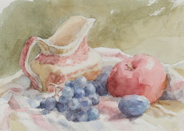 By the mid-1980s, Hendershot’s health had begun to fail. Oils became exhausting; she worked in watercolour and sketched. Still Life with Small Pitcher, Grapes, Plums and Apple 1987 is one of her last paintings, done in the Autumn before she died. It is a work of life and force.